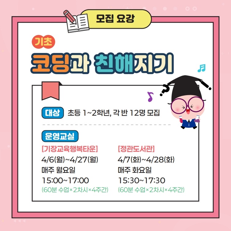 기장 SW 코딩교실 수강생 모집(기장군 초등 1~2학년 대상)