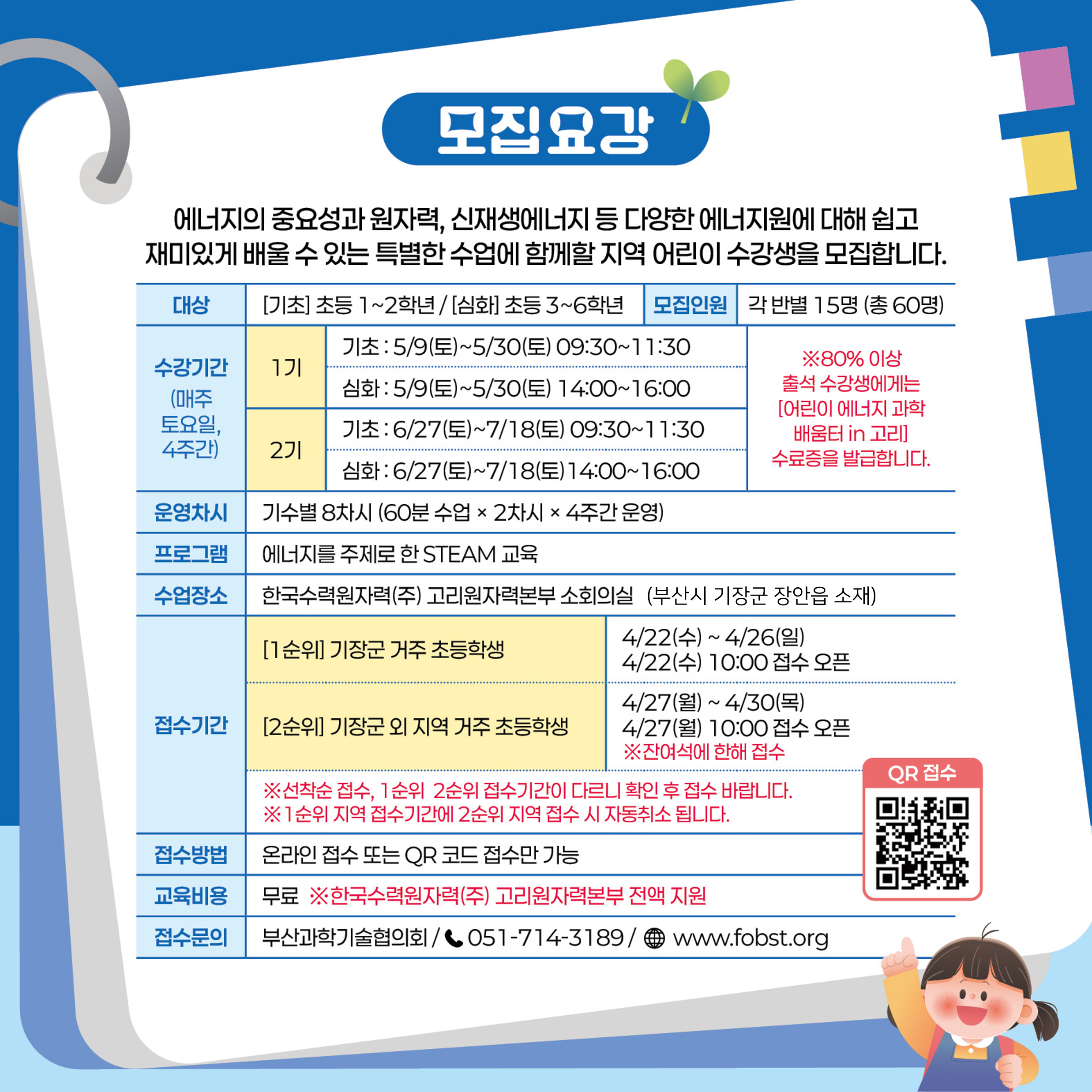 2026년 어린이 에너지 과학 배움터 in 고리 수강생 모집