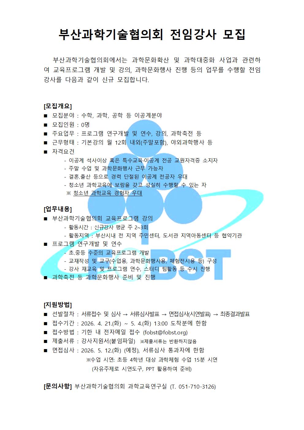 [채용공고]2026년도 부산과학기술협의회 직원 채용공고